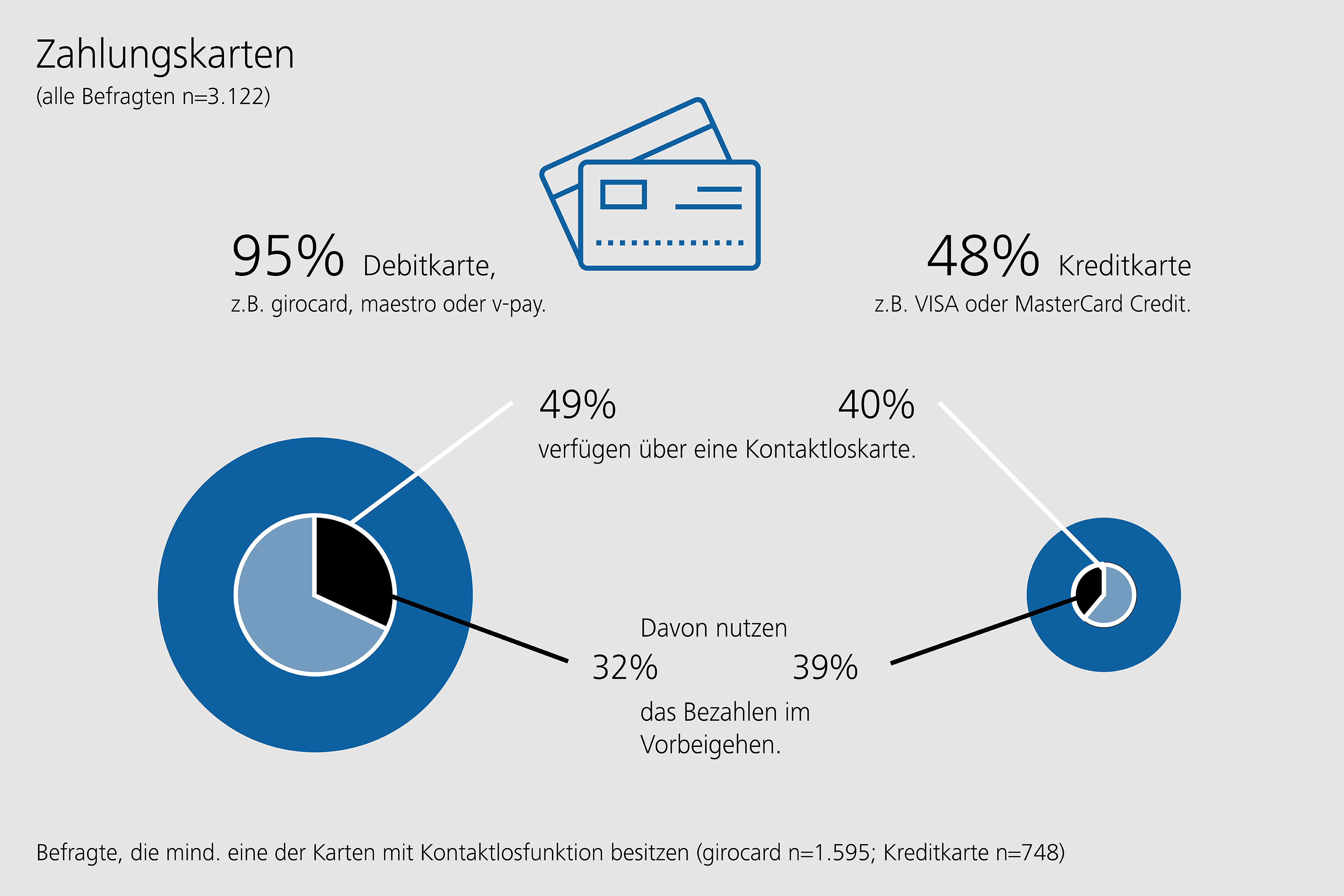 „Auch das Bezahlen per Smartphone ist an den Ladenkassen mittlerweile üblich“, so Balz weiter. Die mobilen Bezahllösungen der Sparkassen und genossenschaftlichen Institute sind hierbei am bekanntesten (47 Prozent der Befragten) und werden bereits von 11 Prozent der Befragten genutzt. Etwas häufiger wird nur Payback Pay genutzt (12 Prozent). Lösungen internationaler Internetkonzerne wie Google Pay und Apple Pay sind zwar fast gleichermaßen bekannt (45 Prozent beziehungsweise 41 Prozent), werden bislang allerdings weniger genutzt (5 Prozent beziehungsweise 4 Prozent).Gleichzeitig bleibt das Girokonto das Rückgrat des Zahlungsverkehrs in Deutschland: 98 Prozent der Bürgerinnen und Bürger haben Zugang zu einem Girokonto. Allerdings können sich schon 30 Prozent der jüngeren Befragten im Alter von 25 bis 34 Jahre vorstellen, ihr Konto statt bei einer Bank bei einem anderen Anbieter wie einem Internetkonzern zu führen.Bei Bezahlverfahren im Internet zeigt sich hingegen wenig Bewegung. Für die Bezahlung im Internet nutzen die meisten Befragten die Banküberweisung beim Kauf auf Rechnung (69 Prozent) und die Bezahllösung des Anbieters PayPal (68 Prozent). Auf Platz drei der üblicherweise genutzten Onlinezahlverfahren folgt die Lastschrift (59 Prozent der Befragten).Hintergrund der StudieDie Bundesbank führt seit dem Jahr 2008 regelmäßig umfangreiche Studien zum Zahlungsverhalten durch. Dafür werden jeweils 2.000 zufällig ausgewählte Bürgerinnen und Bürger von Interviewern vor Ort befragt. Anschließend führen die Befragten ein einwöchiges Tagebuch, in welchem sie ihr Zahlungsverhalten dokumentieren. Die Ergebnisse dieser Umfragen werden in der Studienreihe „Zahlungsverhalten in Deutschland“ veröffentlicht und können unter dem gleich benannten Link am Ende dieser Seite abgerufen werden. Darüber hinaus flossen die Ergebnisse in eine europaweite Vergleichsstudie der Europäischen Zentralbank ein (siehe Link „Occasional Paper Series“ weiter unten). Für das Jahr 2019 wurde eine zweite europaweite Studie von der EZB beauftragt. Die Bundesbank unterstützte die EZB-Studie bei der Erhebung des Fragebogens in Deutschland. Dabei wurden auch Daten zu Fragen erhoben, welche spezifisch den deutschen Markt betreffen. Die auf der Auswertung dieser Daten gewonnenen Erkenntnisse sind nun erstmals veröffentlicht.
